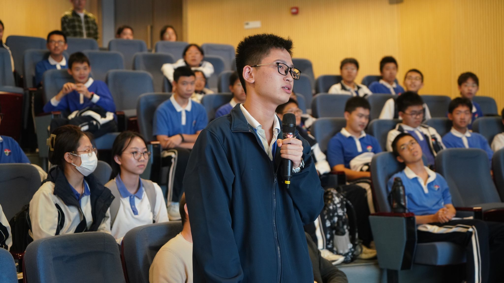 At Shenzhen Senior High School (Group), Academician Xi Nanhua delivered a special report titled “Mathematical Conjectures.” Attendees included Sun Zongliang, Dean of the School of Mathematical Sciences and Head of the Department of Pure Mathematics at Shenzhen University; Duan Guoqing, Vice Principal of Shenzhen Senior High School (Group); Yang Zhe, Director of the Student Development Department; and Wu Zhijun, Director of the Innovation Education Research Center.