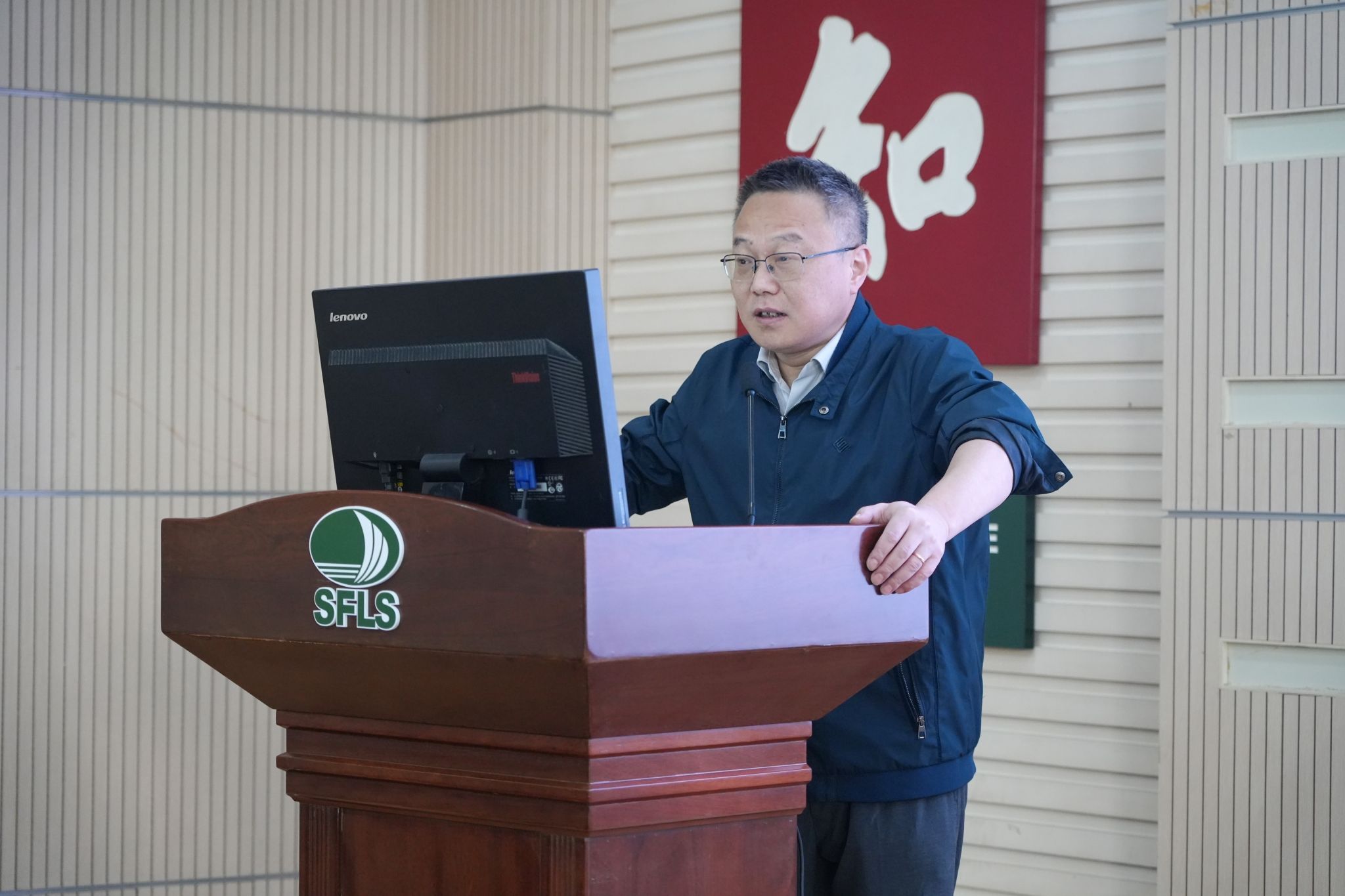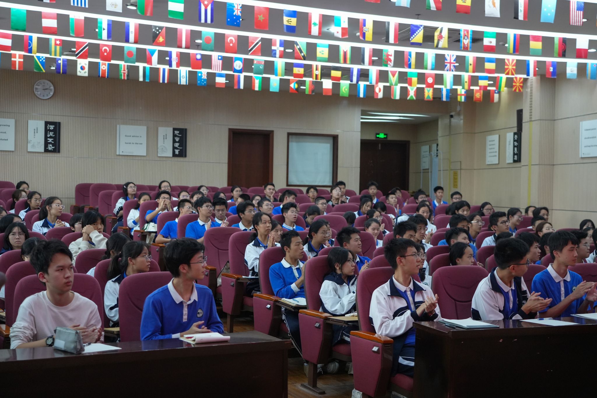 At the High School Division of Shenzhen Foreign Languages School (Group), Academician Shen Weixiao delivered an engaging lecture titled “The Journey of Finding Roots of Polynomials.” Hu Yaohua, Vice Dean of the School of Mathematical Sciences at Shenzhen University; Guang Lei, Vice Principal of Shenzhen Foreign Languages School (Group); Shi Shifeng, Deputy Director of the Liberal Arts College; along with faculty and student representatives attended the event.