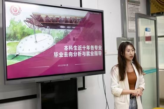 数学与统计学院在汇星楼501举办了“2023生涯规划暨就业辅导分享会——本科生近十年各专业毕业去向分析与就业指导”,分享嘉宾为数学与统计学院主管就业工作肖晓君老师。