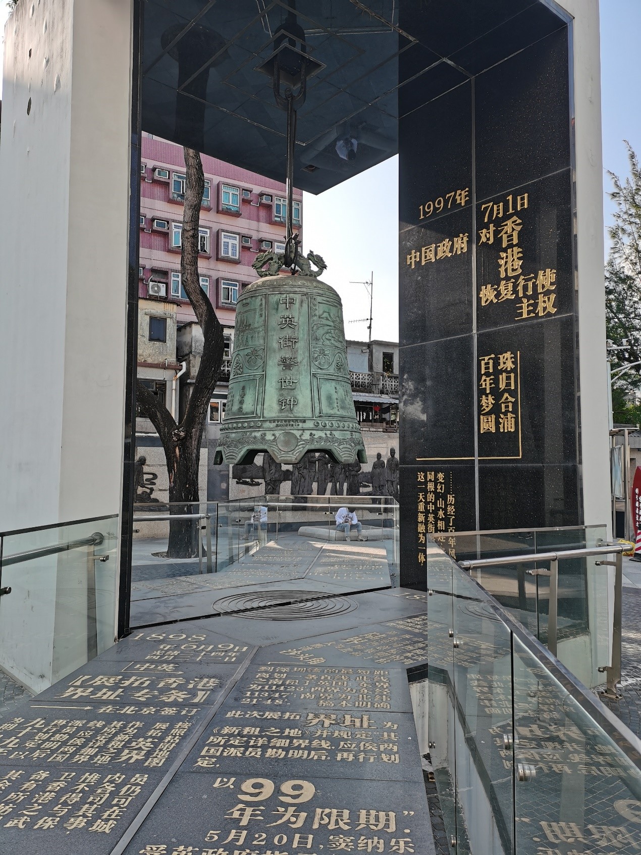 活动伊始,党员同志们在进入中英街历史博物馆感受这里深重历史之前于警世钟处留下了合影。在那段至暗的时代里,随着清政府签订丧权辱国条约,1899年3月18日,沙头角勘界结束,中英街便诞生于中华民族的耻辱之中。每年的3月18日,这里都会传来沉重的钟鸣,警示着中国人民勿忘国耻、振兴中华。