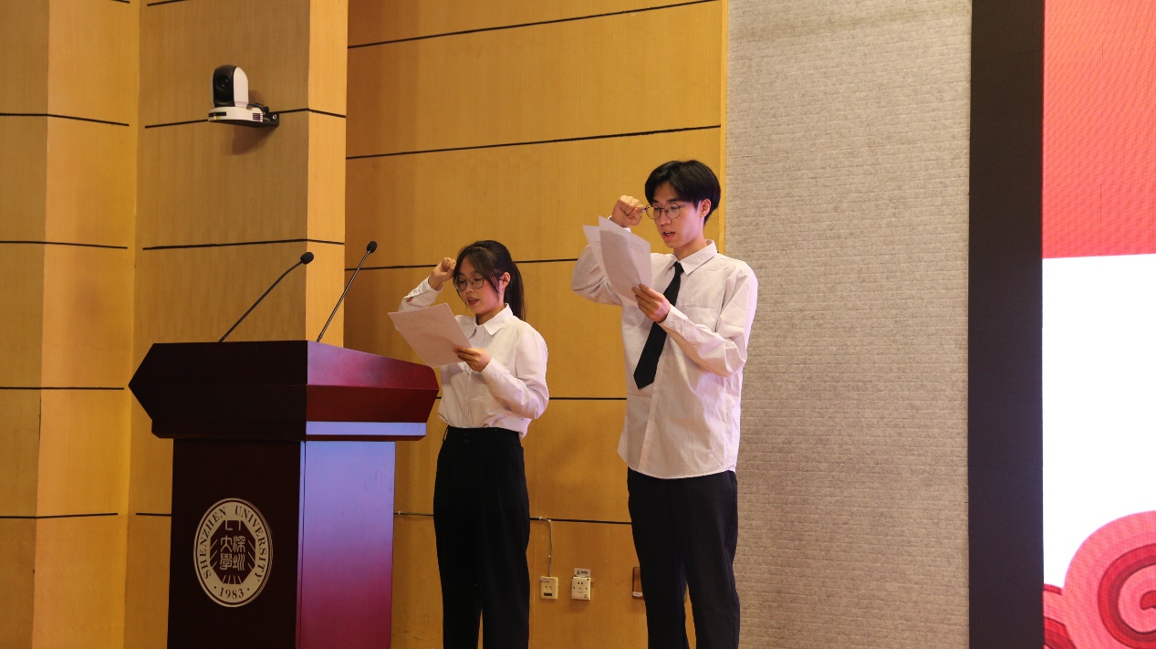 第十九届学生会主席团成员李俊豪、李莉进行履职宣誓。