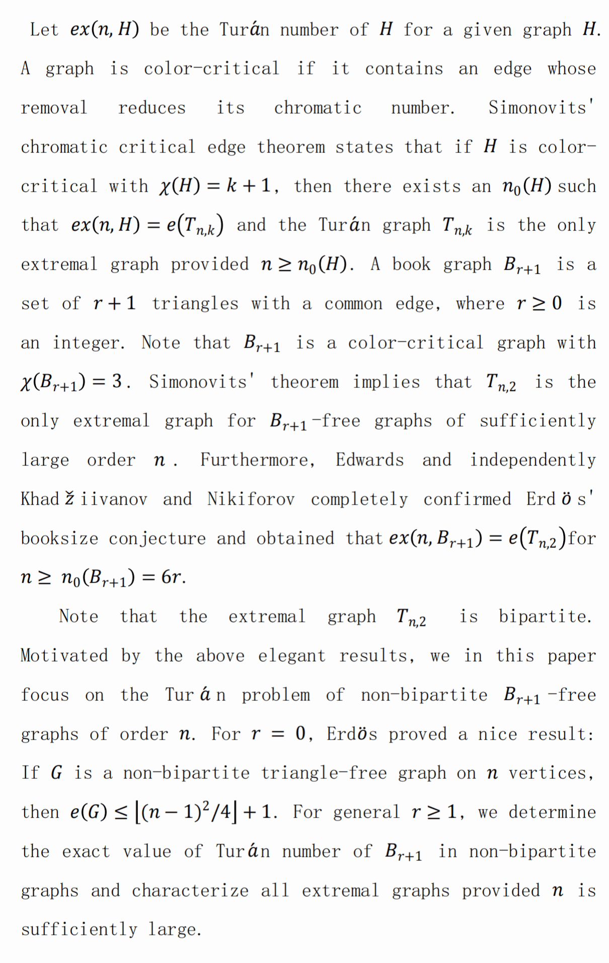 报告题目: Turán number of books in non-bipartite graphs