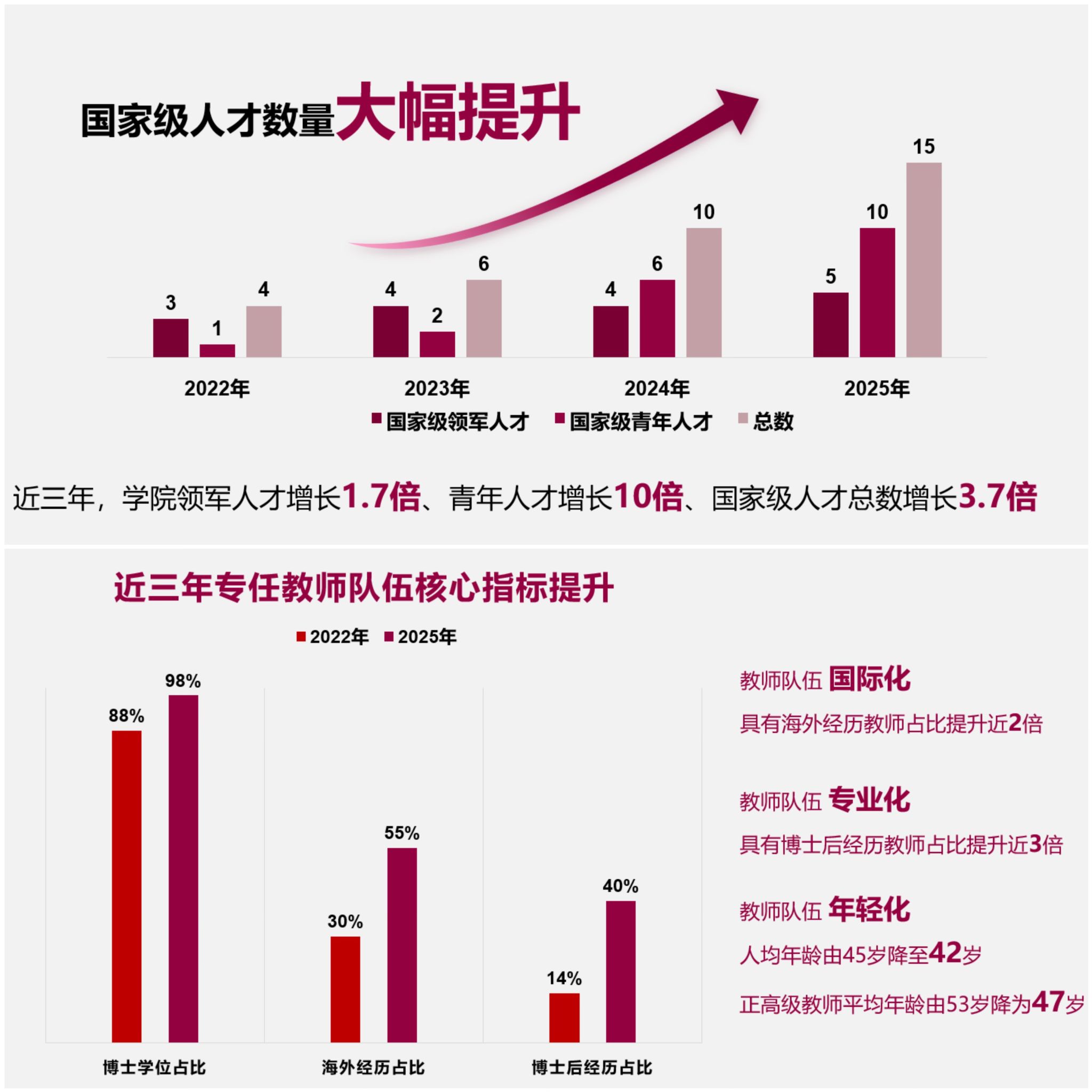 自2023年以来,学院师资队伍建设成效显著,实现专业化、国际化和年轻化多维度提升: