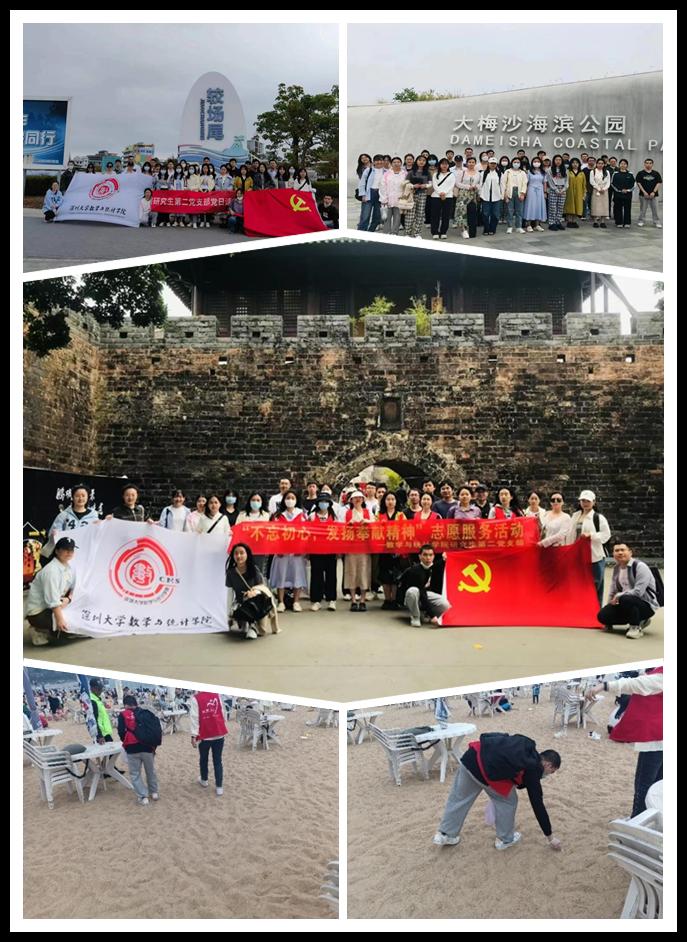 数学与统计学院第二党支部以“不忘初心,发扬奉献精神”为主题,开展主题党日活动,前往大鹏新区较场尾、大鹏所城、盐田区大梅沙海滨公园参观学习、做志愿服务。研究生第二党支部34名学生党员参加了此次活动。